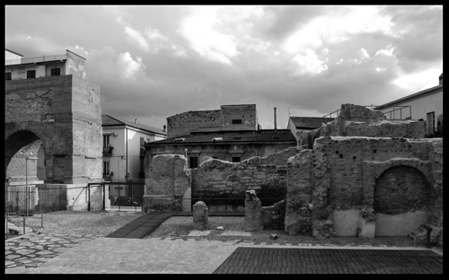 The Arc of the Sacrament is probably so called because in the vicinity of the Cathedral. On'' arc is not much to say except that it has been stripped of the marble facing, or that it was never finished. The fact is that it does not appear different in the antique prints we have received. It appears to be dated by comparison with the theater to the second century AD It 'an arch with a bezel top and two side niches.