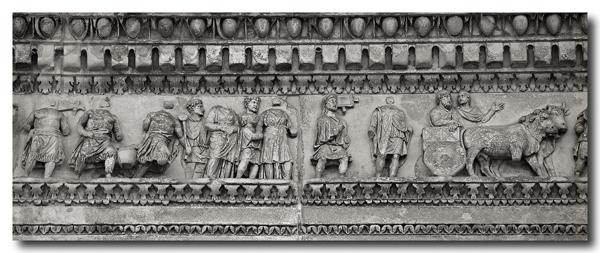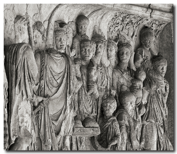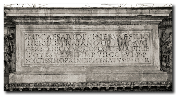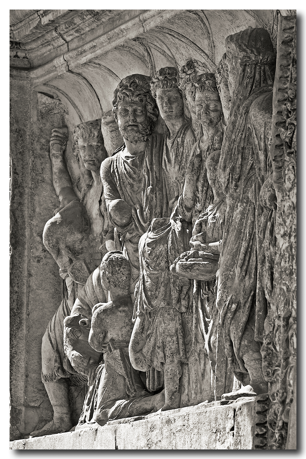 Ein eindrucksvolles Beispiel des römischen Ehrenbogen .. Es wurde in 114 zu Beginn des neuen Via Traiana erbaut, zu Ehren des Optimus Princeps, ein Rückgrat aus Kalkstein Felsbrocken und eine Beschichtung aus Marmor mit Reliefs, die Szenen des Friedens und der militärische Szenen ; im Mittelalter in die Wände eingefügt, bildete die Golden Gate.